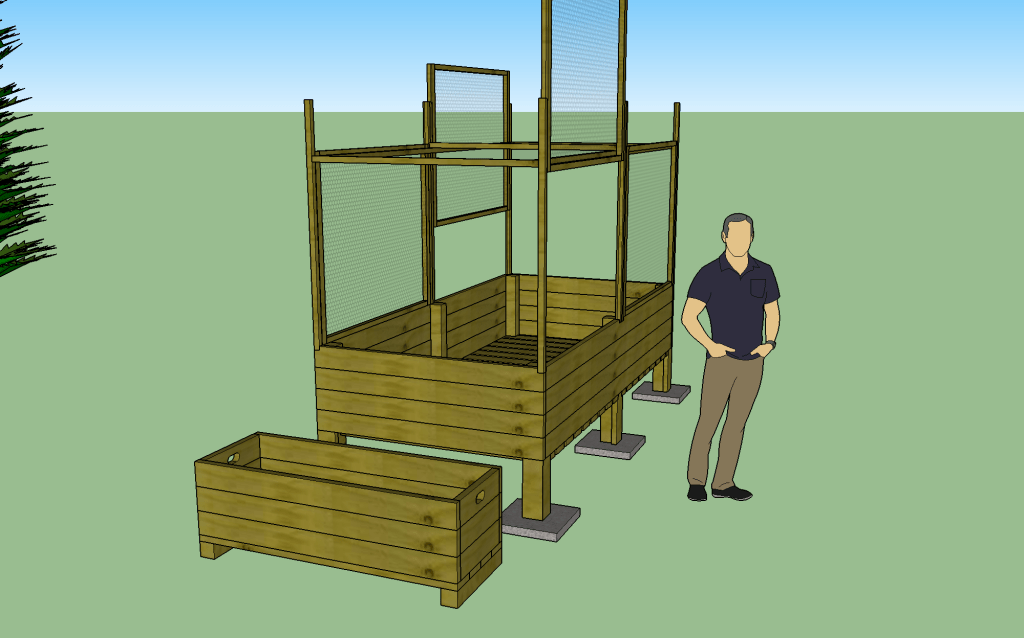 Curcurbitacée a utilisé le logiciel gratuit sketchup pour planifier les besoins de matériaux. On retrouve aussi plusieurs plans gratuits sur Internet, tel que le site d’Ana White qui regorge d’idées DIY. Le choix de l’emplacement a été mûrement réfléchi. Comme ma soeur paysagiste pivoine m’avait donné le précieux conseil de ne rien faire avant un an, le temps de voir l’effet des saisons sur le terrain, nous avons choisi l’endroit le plus ensoleillé, notre cour étant orientée nord-est.