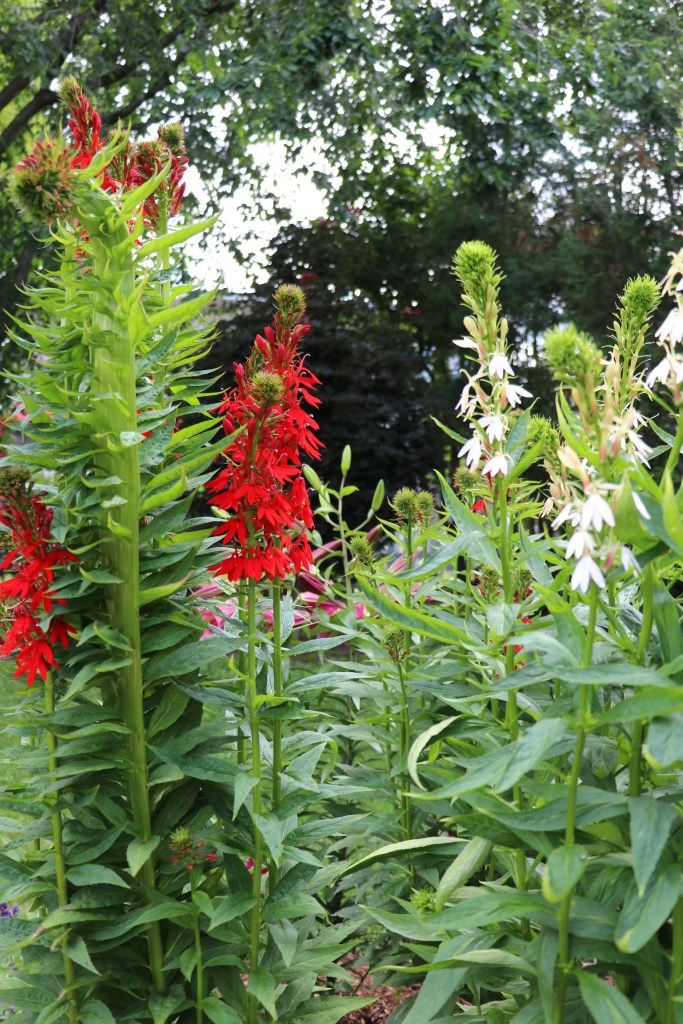 Ce n’est pas non plus parce que les Lobelia Cardinalis sont en fleurs, puisqu’il faudra attendre la fin juillet prochain. Nous avons planté ces belles fleurs rouges écarlates pour attirer les colibris à gorge rubis. C’est l’espèce la plus commune d’ « oiseaux mouches » que l’on retrouve au Québec.